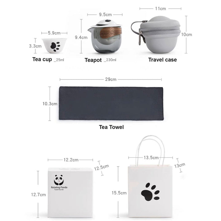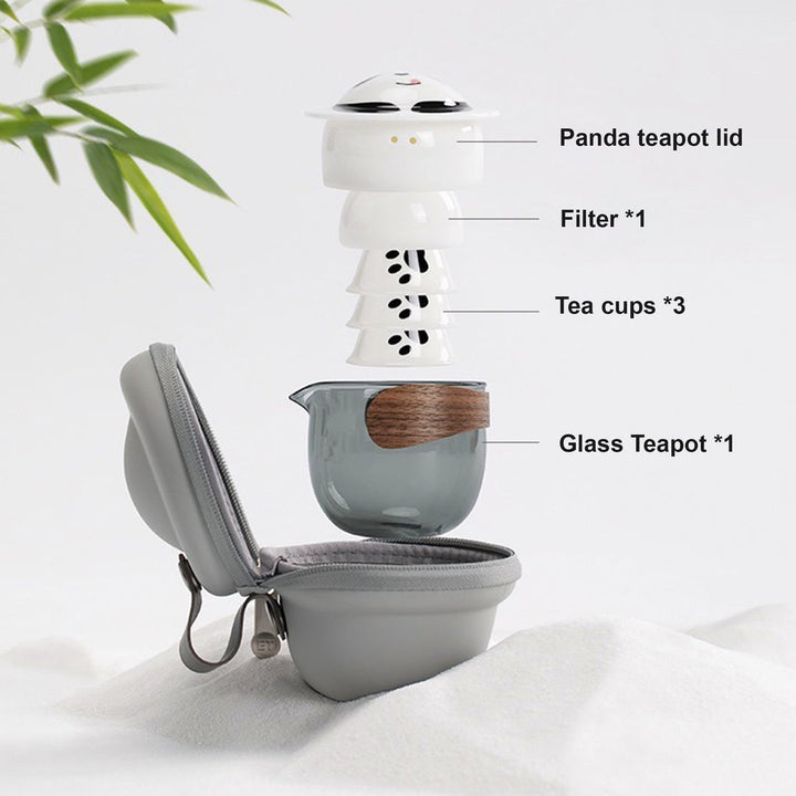All-in-one Cute panda travel tea set with case | 1 teapot, 3 cups | Bitthday gift for panda lovers All-in-one design and mini size, you get all need for your tea ceremony Unique panda shape of tea pot lid and tea cups. Perfect holiday gift, wedding gift, bridal gift, baby shower gift, housewarming gift, birthday gift Material ceramic, glass, bambooWhat's in the box?~ Teapot with panda lid*1 *1 (230ml)~ Ceramic infuser *1~ Tea cups *3 (25ml)~ Tea towel*1~ Travel case *1~ Gift box*1~ Gift bag *1All-in-one Cute panda travel tea set with case | 1 teapot, 3 cups | Bitthday gift for panda lovers All-in-one design and mini size, you get all need for your tea ceremony Unique panda shape of tea pot lid and tea cups. Perfect holiday gift, wedding gift, bridal gift, baby shower gift, housewarming gift, birthday giAll-in-one Cute panda travel tea set with case | 1 teapot, 3 cups | Bitthday gift for panda lovers All-in-one design and mini size, you get all need for your tea ceremony Unique panda shape of tea pot lid and tea cups. Perfect holiday gift, wedding gift, bridal gift, baby shower gift, housewarming gift, birthday gi
