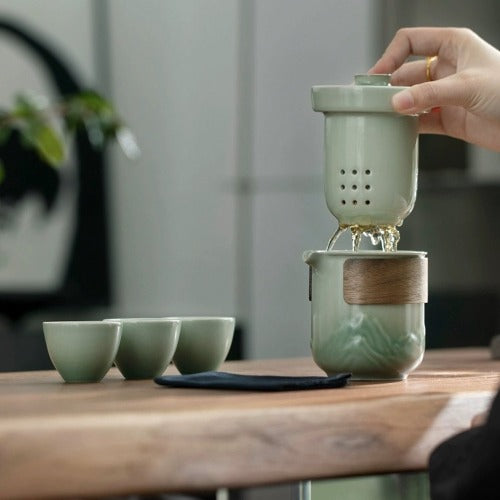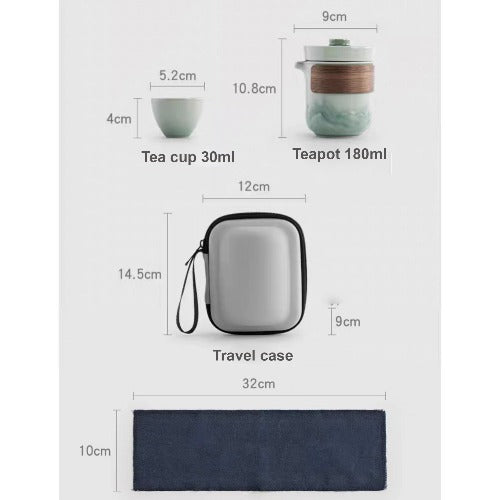 Mountains and seas have always reminded us of challenge and mystery much like life, full of unknowns, highs, and lows.Yet were drawn to explore them.When life gets tough, we often plan a getaway to escape it all.And in that journey, we find something beautifula quiet peace and the courage to carry on.No matter where is your next destination, pack this lovely tea set with you, put your favorite quote on it. Keep sipping, exploring, and unwinding, by yourself, or with loved oneMaterial ceramic, bambooWhat's in the box?~ Handmade vintage teapot with infuser and lid *1 (180ml)~ Tea cup *2 (30ml)~ Travel case *1~ Tea towel *1~ Gift box *1~ Gift bag *1We offer free personalization service, leave a note about the name or logo you want to have on your tea setShop the best tea gift set | Free shipping | Personalized travel tea set with case | tea set for two - tea on the go - 1 ceramic teapot 2 cups with case For a unique and personal touch, opt for our Custom Name Travel Tea Set with Case. This set includes a teapot with infuser, making it perfect for on-the-go tea enthusiasts. Not only does it serve as a beautiful dining decor, but it also makes a thoughtful and practical thank you gift. Material ceramic, bamboo What's in the box?~ Handmade vintage teapot with infuser and lid *1 (180ml)~ Tea cup *2 (30ml)~ Travel case *1~ Tea towel *1~ Gift box *1~ Gift bag *1We offer free personalization service, leave a note about the name or logo you want to have on your tea setShop the best tea gift set | Free shipping | Personalized travel tea set with case | tea set for two - tea on the go - 1 ceramic teapot 2 cups with case For a unique and personal touch, opt for our Custom Name Travel Tea Set with Case. This set includes a teapot with infuser, making it perfect for on-the-go tea enthusiasts. Not only does it serve as a beautiful dining decor, but it also makes a thoughtful and practical thank you gift. Material ceramic, bamboo What's in the box?~ Handmade vintage teapot with infuser and lid *1 (180ml)~ Tea cup *2 (30ml)~ Travel case *1~ Tea towel *1~ Gift box *1~ Gift bag *1We offer free personalization service, leave a note about the name or logo you want to have on your tea set