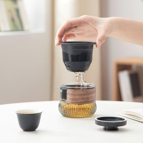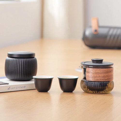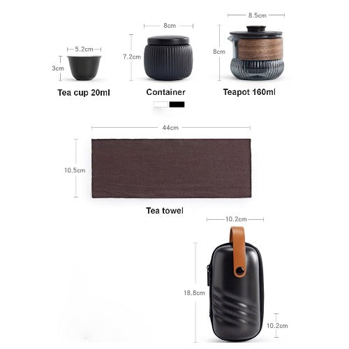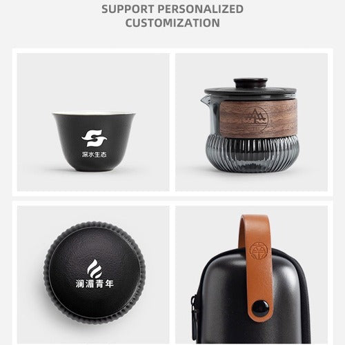 1 Teapot 2 Cups 1 Journey"For the wild hearts who wander, yet always carry home within."Wild Sea is made for moments on the moveacross cities, coasts, or quiet mountaintops. This compact set includes one teapot and two cups, nestled safely in a travel-ready case. Add a name or message, and it becomes more than a setit becomes a story, a memory, a shared pause.Because even in the wildest waves, tea brings us back to center.Elegant travel tea set featuring a ceramic teapot, two matching cups, and a durable carrying case.Why do you need a travel tea set?Having a compact and portable tea set allows you to enjoy a proper tea experience anywhere, whether you're traveling for work, leisure, or outdoor activities like camping.Materials Quality Glass, bamboo holder, metalOrigin Fujian, ChinaSuitable for All types of loose leafy teaWhat's in the box?~ Glass teapot with infuser and lid *1 (160ml)~ Tea cups *2 (40ml)~ Tea container with lid *1~ Brown Tea towel *1~ Leather Travel case *1Experience the convenience and elegance of this personalized Black Pottery Travel tea set, perfect for two people. Elegant travel tea set featuring a ceramic teapot, two matching cups, and a durable carrying case. Multiple Use& Perfect Gift Cup Set - Suitable for brewing different kinds of tea, like black tea, Pu-er, Oolong, Green Tea, and even tea bag. Ideal gifts for tea cravers, household use, office, party, travel, hiking and restaurant use. A great choice for birthday, Valentine's Day, Christmas, Thanksgiving, Father's Day, Housewarming to gift your friends, family and loved one. Why do you need a travel tea set? Having a compact and portable tea set allows you to enjoy a proper tea experience anywhere, whether you're traveling for work, leisure, or outdoor activities like camping. Materials Quality Glass, bamboo holder, metal Origin Fujian, China Suitable for All types of loose leafy tea What's in the box?~ Glass teapot with infuser and lid *1 (160ml)~ Tea cups *2 (40ml)~ Tea container with lid *1~ Brown Tea towel *1~ Leather Travel case *1Experience the convenience and elegance of this personalized Black Pottery Travel tea set, perfect for two people. Elegant travel tea set featuring a ceramic teapot, two matching cups, and a durable carrying case. Multiple Use& Perfect Gift Cup Set - Suitable for brewing different kinds of tea, like black tea, Pu-er, Oolong, Green Tea, and even tea bag. Ideal gifts for tea cravers, household use, office, party, travel, hiking and restaurant use. A great choice for birthday, Valentine's Day, Christmas, Thanksgiving, Father's Day, Housewarming to gift your friends, family and loved one. Why do you need a travel tea set? Having a compact and portable tea set allows you to enjoy a proper tea experience anywhere, whether you're traveling for work, leisure, or outdoor activities like camping. Materials Quality Glass, bamboo holder, metal Origin Fujian, China Suitable for All types of loose leafy tea What's in the box?~ Glass teapot with infuser and lid *1 (160ml)~ Tea cups *2 (40ml)~ Tea container with lid *1~ Brown Tea towel *1~ Leather Travel case *1