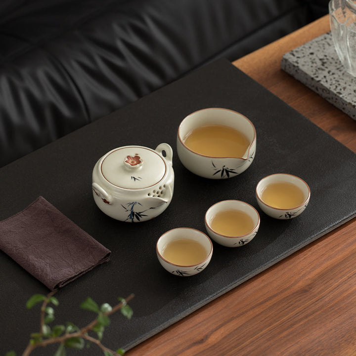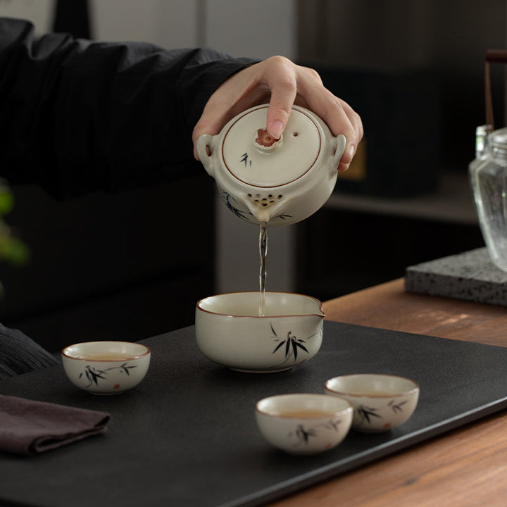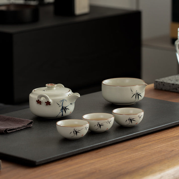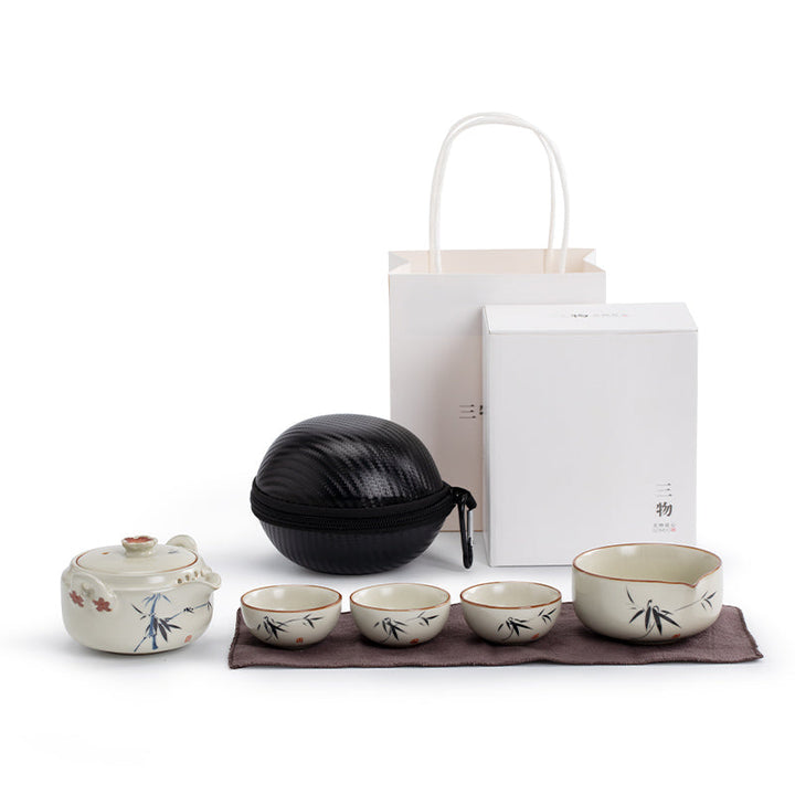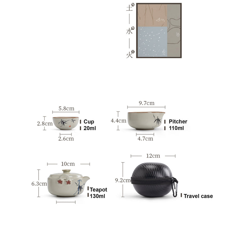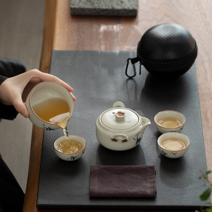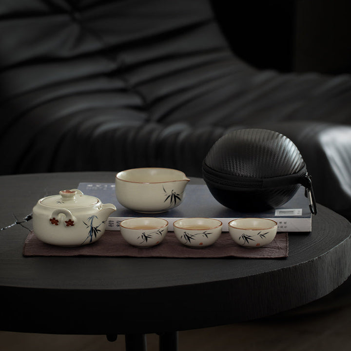 Zen portable tea set with travel case - Chinese Ruyao teapot and cup set